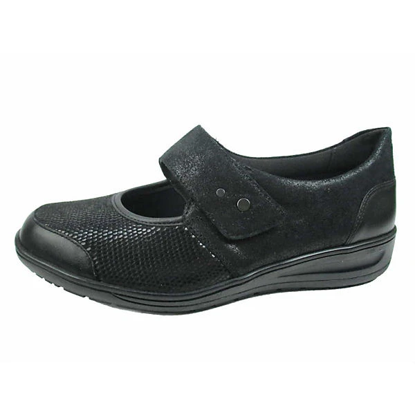 Schöne Ballerinas von Solidus aus einem feinen hochwertigem geprägten Glattleder. Innen ist der Schuh mit einem cromfrei gegerbtem Leder ausgestattet. Der Schuh hat eine normale Weite. 2 cm. Die Laufsohle ist aus Gummi. Der Klettverschluss zum einfachen und bequemen an- und ausziehen sorgt für einen guten Halt.Ebenfalls ist eine stufenlose Anpassung an den Fuß möglich. Die Schuhgröße fällt regulär aus.