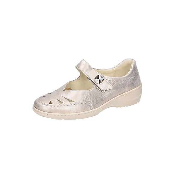 Schöne Ballerinas von Waldläufer aus angenehm weichem und hochertigem Leder. Innen ist der Schuh mit einem cromfrei gegerbtem Leder ausgestattet. Der Schuh verfügt über eine etwas breitere Weite. Der Keilabsatz hat eine Höhe von cirka 2 cm. Die weiche PU-Sohle schont die Gelenke und federt jeden Ihrer Tritte optimal ab. Der Klettverschluss zum einfachen und bequemen an- und ausziehen sorgt für einen guten Halt.Ebenfalls ist eine stufenlose Anpassung an den Fuß möglich. Die Schuhgröße fällt regulär aus.